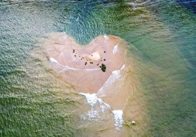 Những đợt sóng biển tung bọt trắng xóa trên cồn cát hình trái tim tạo nên bức tranh thiên nhiên tuyệt vời. Hằng ngày, ngư dân địa phương chèo ghe đến gần khu vực này để thả lưới bắt cá hay bắt ốc. Ông Trần Văn Ánh (ngụ xã Nghĩa Phú, TP Quảng Ngãi) mô tả rằng trước đây khu vực này nước rất sâu. Hai tháng gần đây, mỗi khi thủy triều rút xuống, nước uốn cong như dải lụa, vài ngày gần đây giống như hình trái tim.
