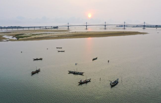 Lúc bình minh, nhiều cồn cát nổi lên, phủ khắp khu vực phía tây của cầu Cổ Lũy. TS Nguyễn Đăng Vũ, nhà nghiên cứu văn hóa tại Quảng Ngãi, kể về thế kỷ 15 khi vùng đất này được biết đến như là vùng Cổ Lũy Động. Ngày nay, Cổ Lũy chỉ còn là tên gọi của một cửa biển: Cửa Cổ Lũy hoặc Cửa Đại Cổ Lũy, là nơi sông Trà và một nhánh sông Vệ đổ về. Dân cư Quảng Ngãi truyền miệng câu hát: “Ai về Cổ Lũy xóm Câu/Nhớ mua đôi chiếc chiếu đón dâu về làng”, nói về làng Cổ Lũy.