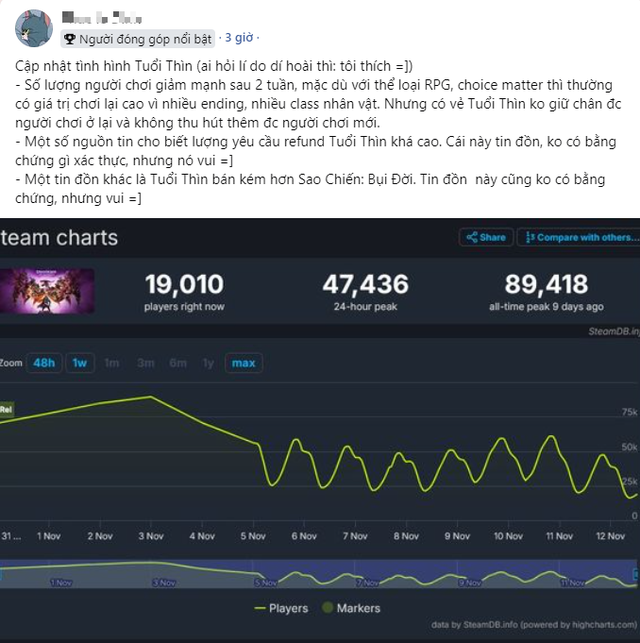 Tuy nhiên, có không ít game thủ lại phản đối mạnh mẽ và cho rằng Dragon Age: The Veilguard khó có thể sánh ngang với các bom tấn hiện tại. Bên cạnh đó, nhiều tin đồn cho rằng tựa game này đang chứng kiến lượng người chơi yêu cầu hoàn tiền khá cao và doanh thu còn thấp hơn cả tựa game thất bại Star Wars: Outlaws. Dù đánh giá trên Steam khá tích cực, số lượng người chơi trực tuyến của game lại giảm sút mạnh, chỉ còn khoảng một nửa so với đỉnh điểm, mặc dù giá trị chơi lại của game vẫn được đánh giá cao.