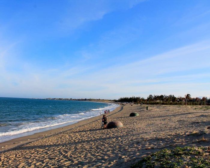 Ở đối diện của công viên chính là bãi biển Bình Sơn, là một trong những bãi biển phổ biến nhất ở vùng duyên hải Nam Trung Bộ với nước biển trong xanh và bãi cát trắng trải dài. Bạn có thể thả mình giữa dòng nước êm đềm hoặc lắng nghe tiếng sóng biển rì rào như những giai điệu ru từ mẹ vào mỗi đêm.
