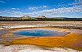 Mạch nước phun nổi tiếng nhất trong công viên, và có thể là trên thế giới, là mạch nước phun Old Faithful, nằm ở Bồn địa Upper Geyser. Mạch nước phun Castle, mạch nước phun Lion và mạch nước phun Beehive cũng nằm trong khu vực này. Yellowstone chứa mạch nước phun hoạt động lớn nhất toàn cầu—Mạch nước phun Steamboat tại bồn địa Norris Geyser. Có khoảng 300 mạch nước phun tại Yellowstone và ít nhất 10.000 điểm địa nhiệt khác. Một nửa tổng số mạch nước phun và hai phần ba các điểm địa nhiệt trên thế giới tập trung tại Yellowstone.