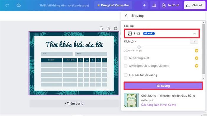 Step 6: Choose the PNG file type, then click Download to save the schedule to your device.