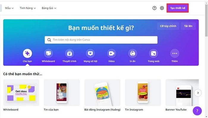 Step 2: On Canva's homepage, select Create a Design at the top right corner.