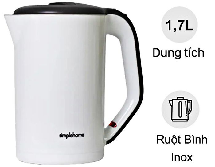 The product has an outer shell made of plastic with good insulation ability. Inside, the inner part of the SimpleHome model D1818 kettle is made of high-strength stainless steel. The 1.7-liter super-fast kettle features a 360-degree rotating power base, making boiling water very convenient.