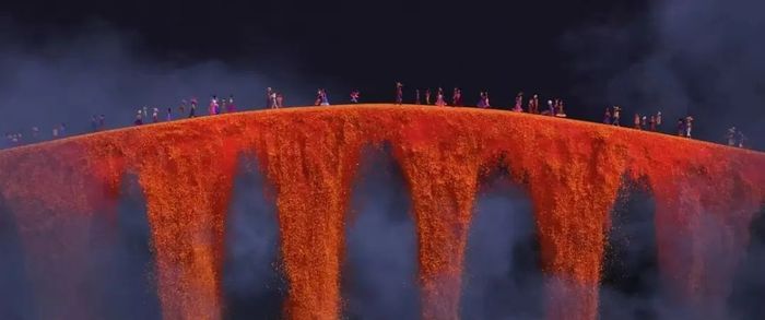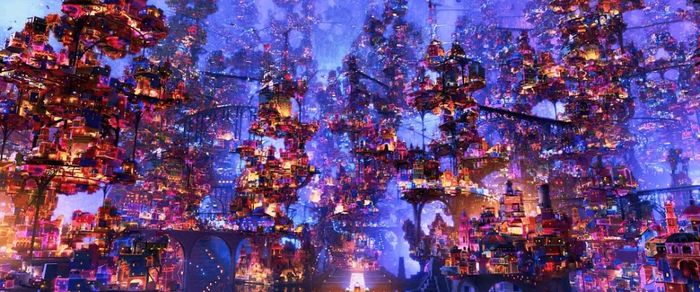 Thế giới người đã khuất được mô tả trong phim đẹp đẽ và sặc sỡ không kém gì thực tế. Nơi đó tràn ngập hoa tươi, rượu ngon, dòng sông và những ngôi nhà với nhiều màu sắc khác nhau... Sự kết nối giữa hai thế giới là chiếc cầu hoa cúc - biểu tượng hoa yêu thích của người Mexico.