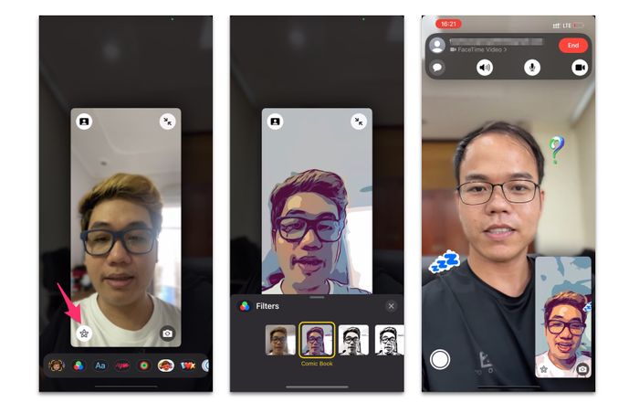 Ngoài ra, có rất nhiều hiệu ứng, sticker và Memoji để bạn thêm vào trong cuộc gọi FaceTime, giúp tạo thêm niềm vui, đặc biệt khi gọi cho bạn bè. Chỉ cần nhấp vào biểu tượng ngôi sao khi đang trong cuộc gọi FaceTime và bạn có thể lựa chọn thoải mái. Những hiệu ứng này sẽ tự động điều chỉnh theo chuyển động của khuôn mặt của bạn.