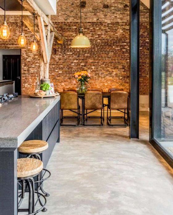 Ngược với xu hướng hiện đại và chỉn chu, Industrial sử dụng những bức tường gạch thô, không tô màu, để thể hiện đặc điểm 'cá tính' riêng. Chúng nhấn mạnh vào cấu trúc nguyên bản của thiết kế và sử dụng gạch đỏ trần để tạo cảm giác ấm áp cho không gian. Nét bụi bặm của những bức tường này là điều mà bạn có thể cảm nhận được.