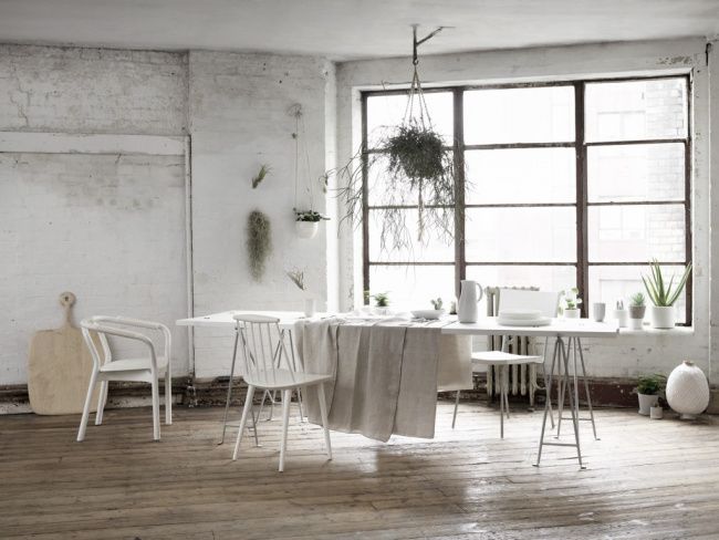 Các chiếc bàn với thiết kế hiện đại, đơn giản luôn xuất hiện, cũng như sự xuất hiện của sofa vải, một điều hiếm thấy trong phong cách Industrial. Loft còn sử dụng nhiều gam màu trắng để làm cho không gian trở nên rộng lớn hơn. So với Industrial, Loft giống như sự kết hợp giữa chất cũ và mới, tạo ra sự tiện nghi trong sinh hoạt mà vẫn giữ được tính độc đáo chỉ có thể tìm thấy trong những phong cách từ những xưởng sản xuất.