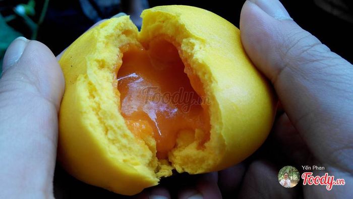 Mỗi chiếc bánh có giá chỉ 12k, với nhân đậu xanh hoặc dứa bên trong. Tùy