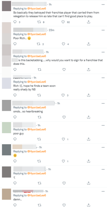 Hành động của NS khiến cộng đồng LMHT tỏ ra phẫn nộ. Rich đối diện với khó khăn khi tìm đội mới, đặc biệt khi anh đã có kinh nghiệm dày dặn tại LCK.