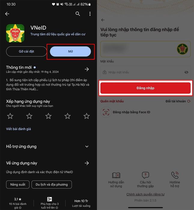 Bước 1: Đảm bảo bạn đang sử dụng phiên bản mới nhất của ứng dụng VNeID. Nếu chưa, hãy truy cập App Store, CH Play hoặc truy cập theo đường link bên dưới để cập nhật ứng dụng.