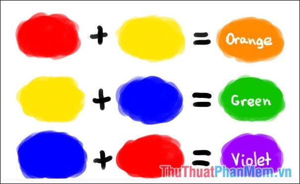 Thợ nhuộm sáng tạo từ 3 màu chính, tạo ra Màu thứ 2 với Cam - Tím - Xanh (lá cây)