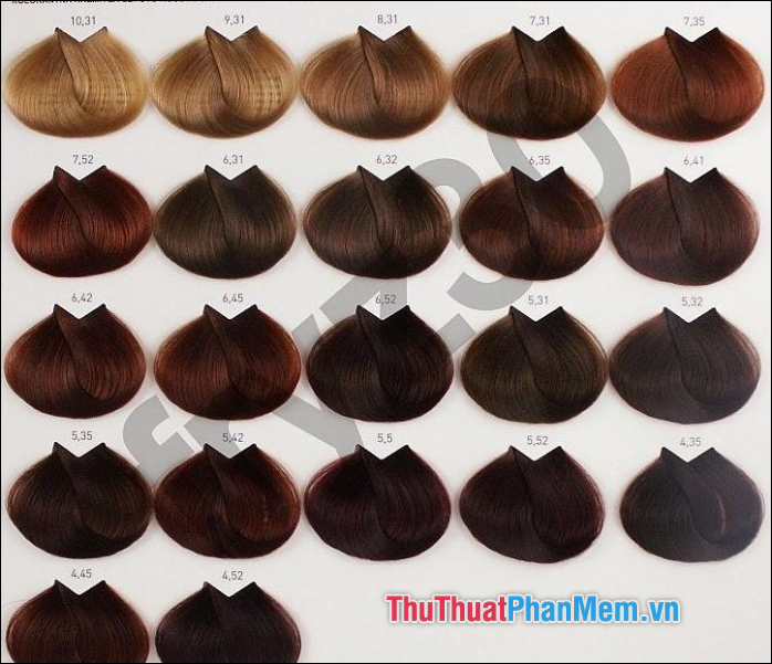 Độ đậm nhạt của màu nhuộm được đánh giá từ 1 đến 10. Số càng nhỏ, màu càng đậm/tối. Hệ thống này áp dụng cho tất cả các loại thuốc nhuộm chuyên nghiệp.
