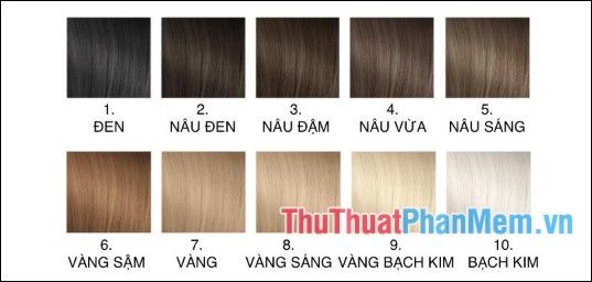 - Số thứ 1: Thể hiện độ đậm nhạt của màu nhuộm tóc.