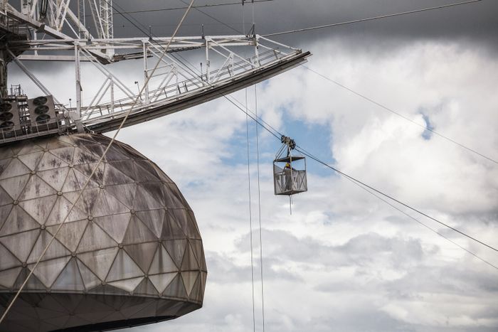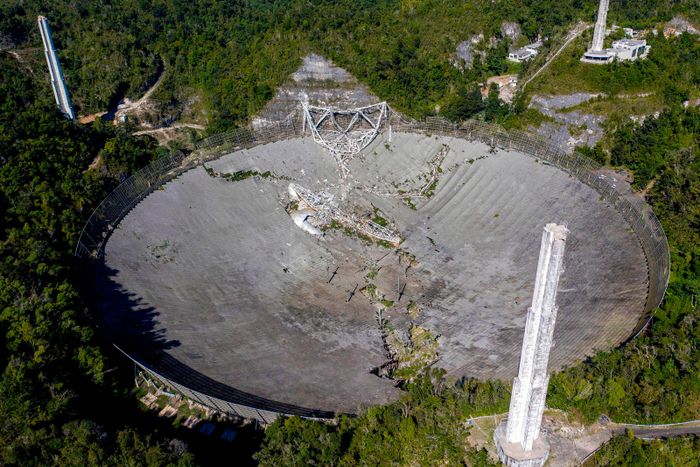 Sau đó, vào tháng 8 vừa qua, một trong những sợi dây kim loại dày 3 inch chạy từ một góc của nền đài đến một trong ba tháp bê tông từ đó nó được treo đứt. Sợi dây rơi xuống hàng trăm feet, cắt vụt qua đĩa bên dưới. Tại sao nó hỏng vẫn chưa rõ, nhưng những cơn gió mạnh liên tục từ nhiều cơn bão mạnh hơn, kết hợp với nhiều năm đầu tư kém vào cơ sở hạ tầng của đài quan sát, không thể giúp ích được. Tuy nhiên, tai nạn vào tháng 8 ban đầu dường như chỉ là một phần may mắn xấu, điều có thể vượt qua với đủ sáng tạo và tiền bạc. Việc thay thế cáp hỏng và khoảng 250 tấm nó đã xuyên qua ít nhất, so với việc hồi phục từ Maria, là công việc kỹ thuật cổ điển ít nhất.