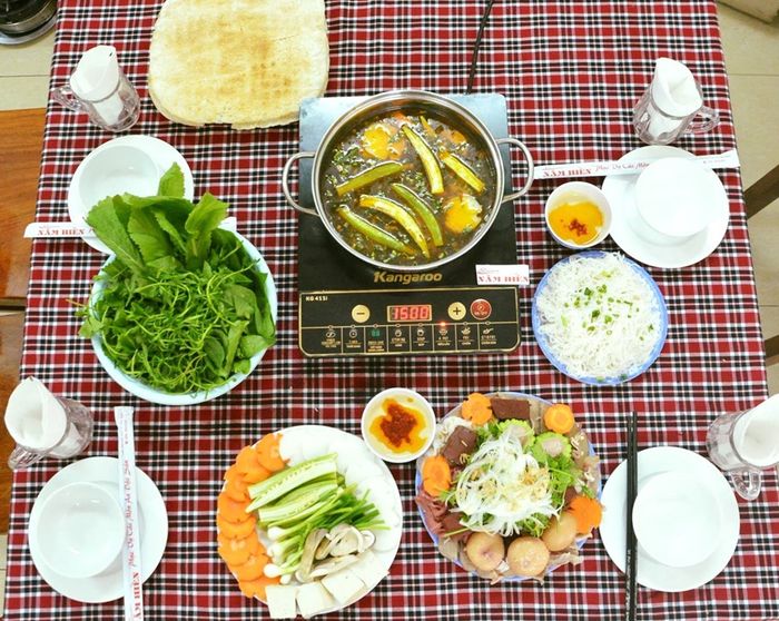 Thưởng thức hương vị lẩu bò Quy Nhơn tại quán Năm Hiền (Ảnh: Sưu tầm)2. Lẩu bò Đường Sắt Quy Nhơn không gian thoáng mát