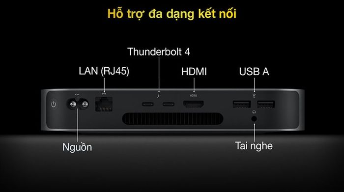 Với sự đa dạng của các cổng kết nối, việc kết nối các thiết bị ngoại vi trở nên đơn giản và thuận tiện hơn. Bạn có thể dễ dàng liên kết Mac Mini với chuột, bàn phím, và màn hình từ các nhà sản xuất khác mà không cần là của Apple.