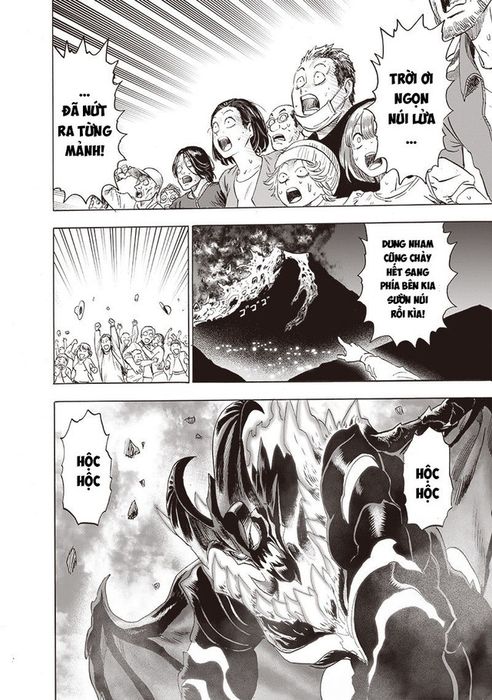 Không chỉ dừng lại ở đó, Garou tiếp tục tiến hóa và tấn công Saitama với những tuyệt kỹ đặc sắc. Một đòn tấn công mạnh đến mức làm bay cả một phần ngọn núi lửa, làm cho dung nham trôi về hướng khác. Điều này vô tình giúp đỡ những người dân đang đối mặt với nguy cơ mất nhà do dung nham đổ về.