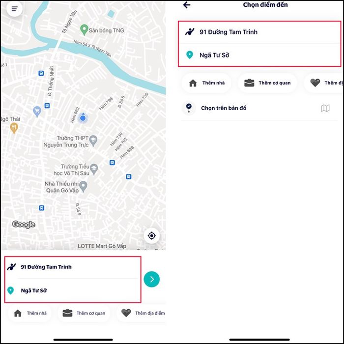 Bước 1: Mở ứng dụng, sau khi đăng nhập, nhập địa chỉ điểm đón và điểm đến.
