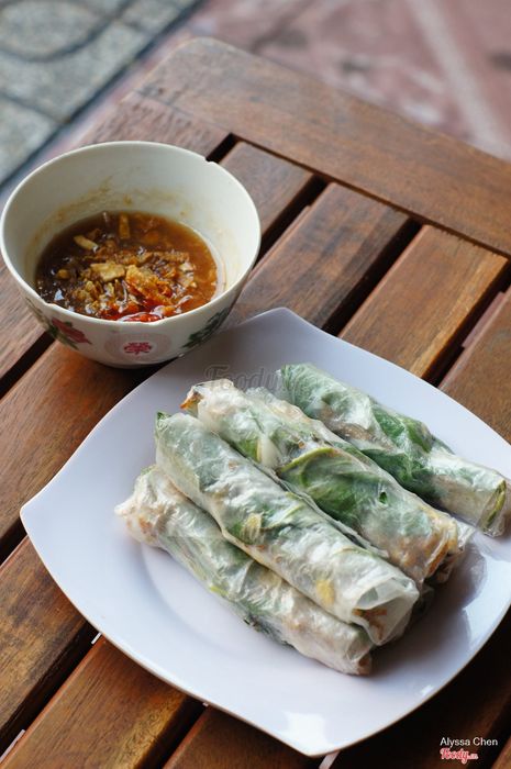 Quán này nằm trong con hẻm nhỏ xíu nhưng bán đồ siêu ngon luôn nha. Món hút khách nhất chính là bánh tráng mắm ruốc. Bánh tráng sau khi được thoa mắm ruốc xong thì bày biện với những nguyên liệu như: nem chua, chả lụa, trứng cút, mỡ hành... rồi xịt thêm tương và nướng lên giòn rụm.