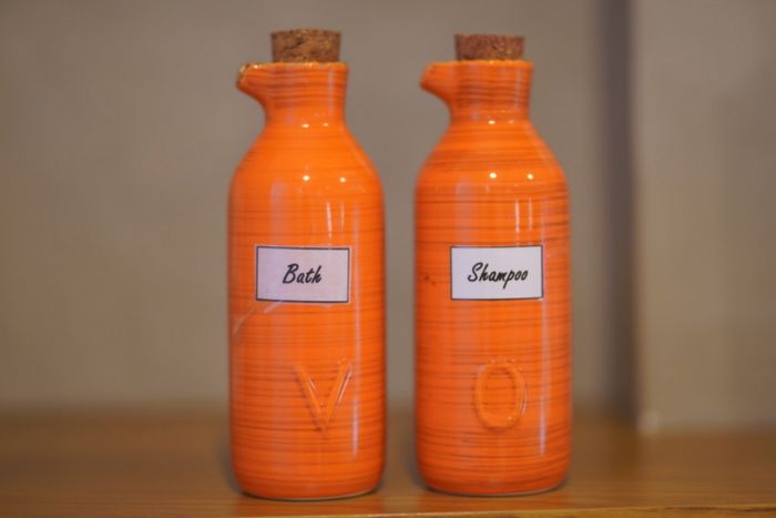 Sữa tắm và dầu gội được đựng trong những lọ độc đáo, mang đến một trải nghiệm tinh tế