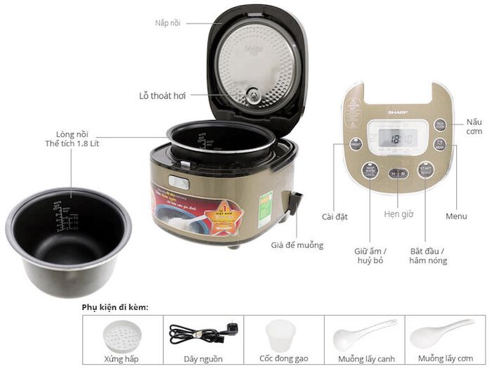 Sharp KS-TH18-GL là một lựa chọn sang trọng và hiện đại cho gia đình. Dung tích 1.8 lít đáp ứng nhu cầu nấu cơm hàng ngày cho từ 4 đến 6 người ăn. Bảng điều khiển đa chức năng với 13 chế độ nấu tự động, từ cơm thường đến hấp và làm bánh.