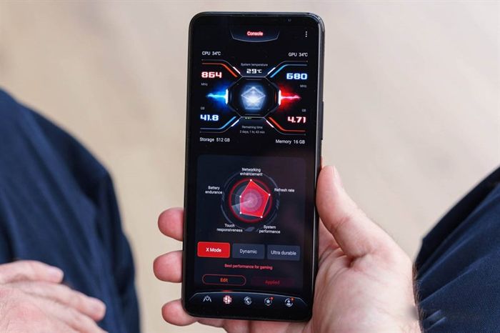 Với Snapdragon 8 Gen 2, ASUS ROG Phone 7 đảm bảo hiệu suất cao cho mọi tựa game mạnh mẽ. Nguồn: GSMArena.ASUS ROG Phone 7 có hiệu suất X-Mode thông minh hơn, ưu tiên luồng chính của trò chơi và cân bằng luồng nâng cao. Cải tiến này giúp duy trì hiệu suất ổn định và cân bằng giữa nhiệt và thời lượng pin. Cập nhật trong Armory Crate tiếp tục điều chỉnh hiệu suất cho từng tựa game phổ biến.
