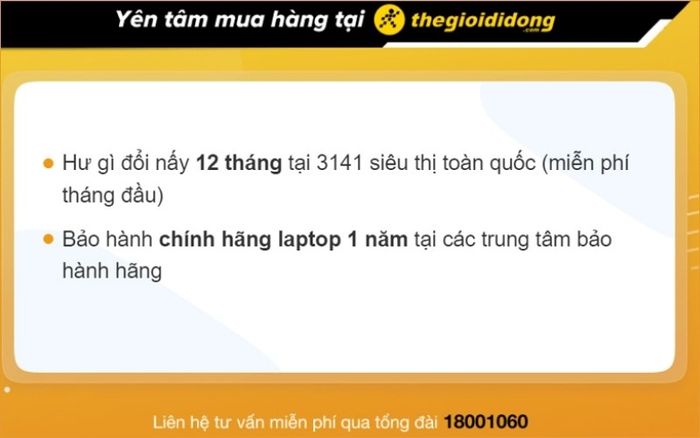 - Bảo hành chính hãng laptop trong 1 năm tại các trung tâm bảo hành ủy quyền của hãng.