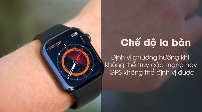 Một tính năng độc đáo chỉ có trên Apple Watch S5 là la bàn từ tính, được tối ưu hóa cho những người yêu thích thể dục như leo núi hay bơi thuyền. La bàn từ tính không chỉ chính xác hơn mà còn giảm thiểu lag và sai lệch so với các dòng cũ sử dụng định vị GPS.