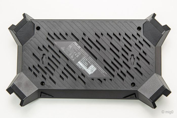 Router WiFi ASUS ROG Rapture GT-AX6000 là sự lựa chọn lý tưởng cho các game thủ với thiết kế độc đáo và tính năng mạnh mẽ. Thiết bị được trang bị 4 chân cao su chống trượt và có thể treo trên tường, tạo nên sự linh hoạt trong việc sắp xếp không gian.