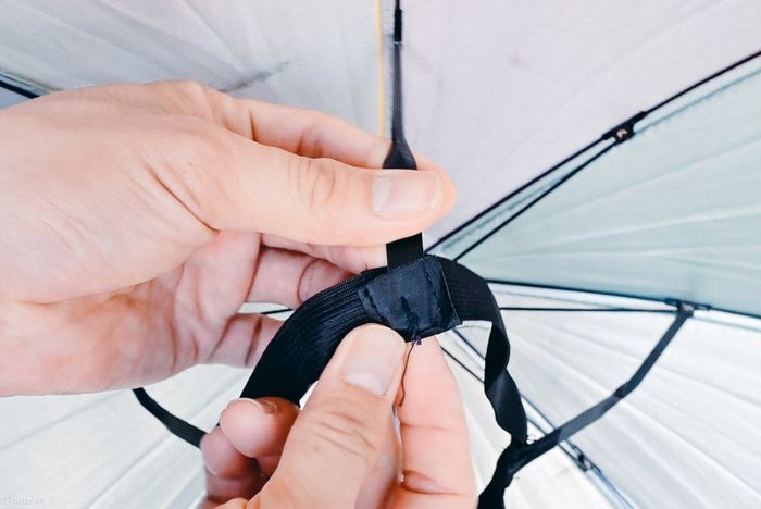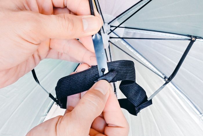 Phần may các chân chống của dù vào dải đai rất cẩu thả và sơ sài, chỉ sử dụng một sợi chỉ nhỏ xíu.