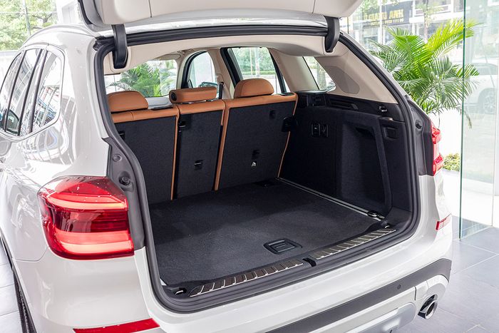 Khoang hành lý của BMW X3 2019 rất rộng rãi với dung tích lên đến 813 lít và khi gập ghế sau, dung tích này tăng lên 1.775 lít. BMW còn có một ngăn chứa đồ phụ dưới mặt sàn để người dùng có thể đựng những vật dụng nhỏ. Điều này được thực hiện nhờ việc X3 2019 sử dụng lốp runflat, không cần sử dụng lốp dự phòng.