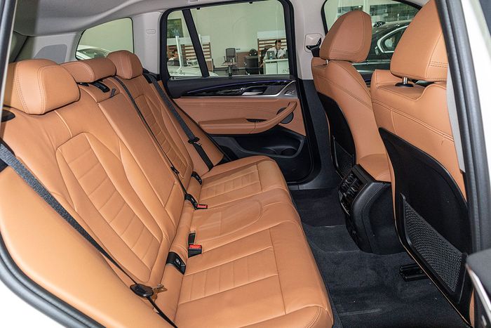 Hàng ghế dành cho hành khách phía sau của X3 2019 có không gian rộng rãi đủ chỗ cho 3 người trưởng thành. Tuy nhiên, người ngồi ở giữa có thể gặp phải chút bất tiện do lưng ghế cứng và khu vực để chân bị hạn chế do hốc gió phụ bị đẩy về phía sau khá nhiều.