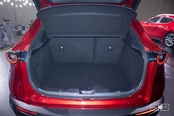 Khoang hành lý của Mazda CX-30 được trang bị tính năng mở điện, dung tích 440 lít (1.432 lít khi gập ghế thứ 2), tương đương Toyota Corolla Cross.