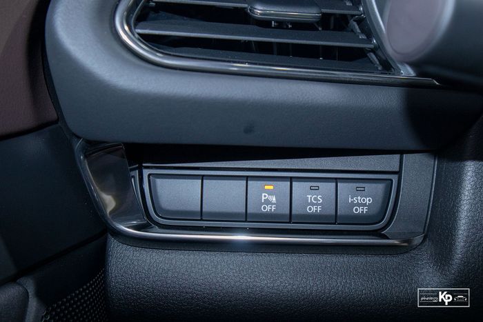Bảng táp lô của CX-30 2021 nổi bật với màn hình giải trí đặt nổi theo xu hướng thiết kế hiện đại. Cụm điều hòa tự động được bố trí gọn gàng và hài hòa.