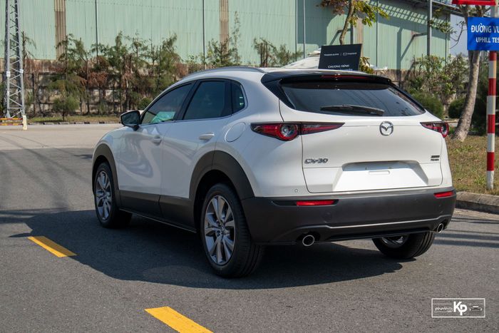 Ở phần đuôi, CX-30 thể hiện dáng vẻ mạnh mẽ và bề thế của một chiếc SUV với dáng vẻ bầu bĩnh. Đèn phanh LED và cánh lướt gió sơn đen là điểm nhấn ấn tượng.