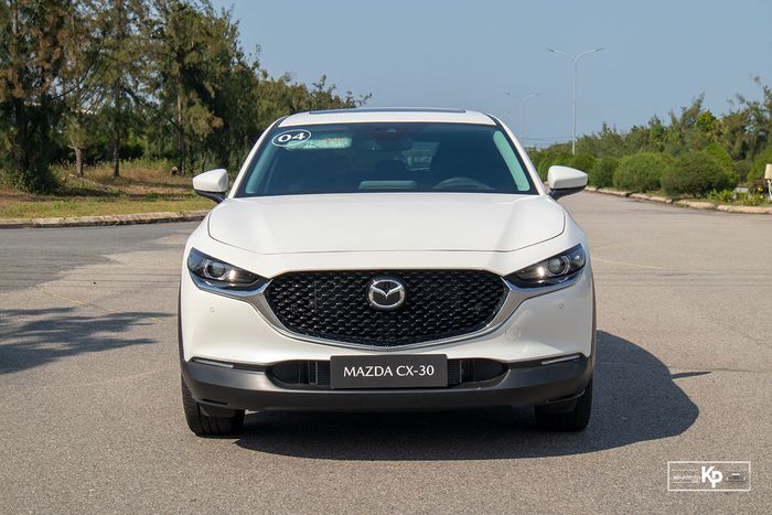 Phần cản trước của Mazda CX-30 được ốp nhựa đen khá lớn, tạo nên vẻ nam tính và mạnh mẽ, nhưng cũng làm cho xe trở nên kém sang vì kích thước lớn.