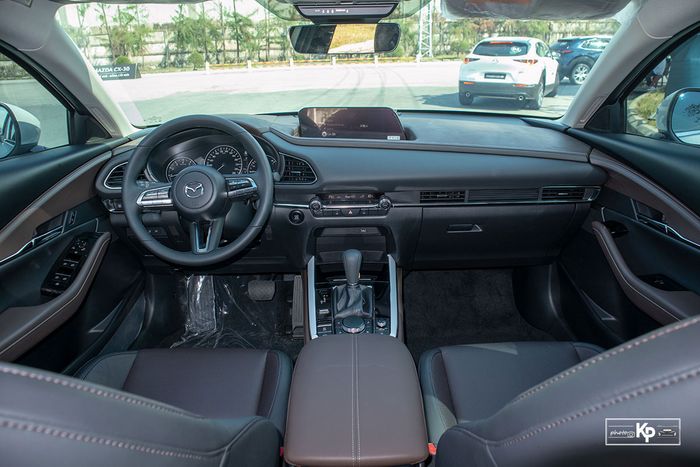 Nội thất của Mazda CX-30 2021 mang đậm dấu ấn của Mazda 3 nhưng vẫn tạo được ấn tượng mạnh mẽ với đội ngũ đánh giá xe. Vật liệu sử dụng đều là da và nhựa mềm, không gian sang trọng với hai tông màu nâu và đen.
