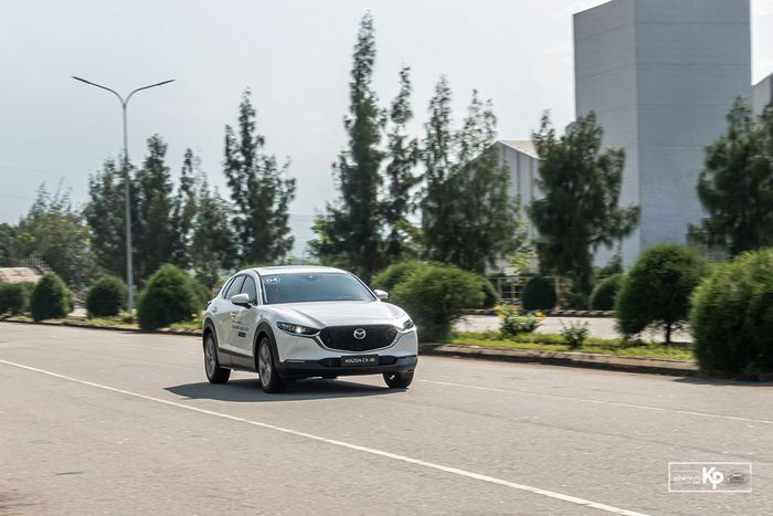 Mazda CX-30 thể hiện sự ổn định tốt khi đi qua đoạn đường gồ ghề, không gây cảm giác lắc ngang mạnh mẽ, tạo sự thoải mái cho hành khách.