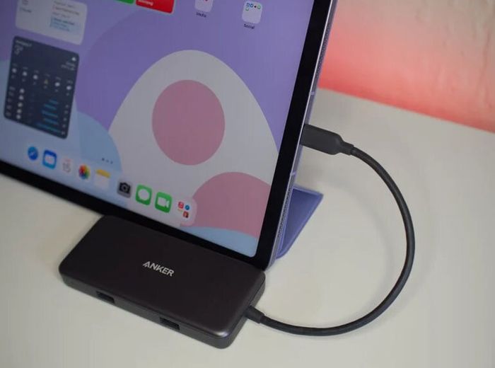 iPad Air 5 vẫn sử dụng cổng USB-C thay vì cổng Lightning trên iPhone hay iPad cơ bản. Cổng USB-C mang lại nhiều lựa chọn kết nối, hỗ trợ Studio Display mới và tốc độ truyền dữ liệu 10Gbps, gấp đôi so với thế hệ trước.
