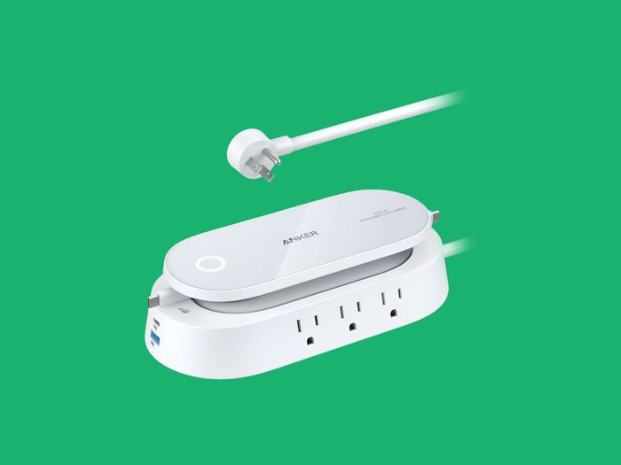 Đây là vấn đề của thế giới phương Tây đầu tiên, nhưng Anker vẫn nghe thấy những lời kêu của tôi. Phần lớn, bộ sạc là một khối sạc kiểu chống sét không có gì đặc biệt. Nó có sáu ổ cắm điện, với ba ở mỗi bên. Bất kỳ dây cáp sạc nào bạn có thể cắm vào tường, bạn cũng có thể cắm vào đây. Ngoài ra, nó có hai cổng USB — một USB-C và một USB-A — mà bạn có thể cắm thêm dây cáp vào.
