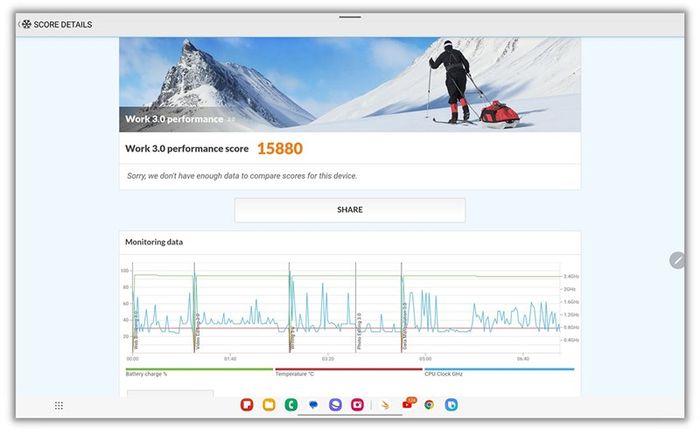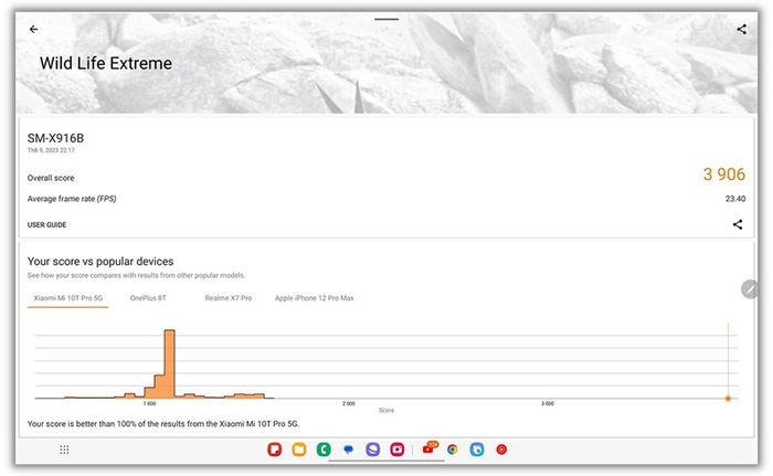 Dễ nhận thấy, Galaxy Tab S9 Ultra đạt được những điểm số đáng kinh ngạc. Điều này chứng tỏ hiệu suất tuyệt vời của Snapdragon 8 Gen 2 For Galaxy được phát huy đầy đủ. Điều này không ngạc nhiên bởi đây là một chiếc tablet có không gian rộng hơn để tản nhiệt, từ đó tối ưu hiệu suất của vi xử lý. Trong quá trình thử nghiệm, thiết bị không có dấu hiệu nóng lên và không gặp phải giật lag nào.