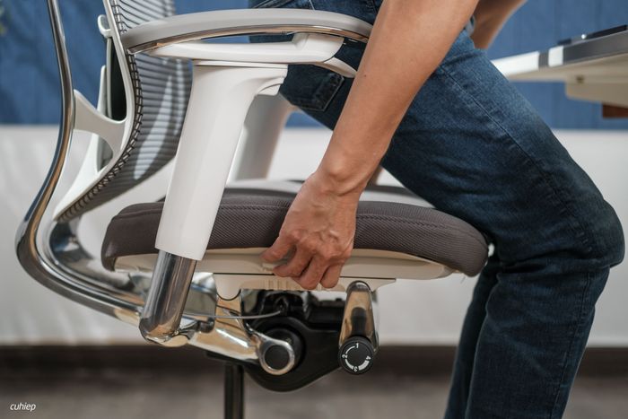 Mặt ghế có thể di chuyển về phía trước hoặc phía sau, điều này cho phép điều chỉnh chiều sâu của mặt ghế từ 40 cm đến 45 cm.