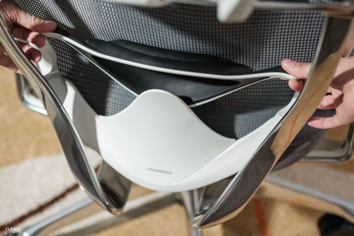 Phía sau của ghế có một thanh nhô ra để treo áo khoác hoặc vest, tuy nhiên mình không thích tính năng này và không mặc vest hoặc áo khoác nên không sử dụng.