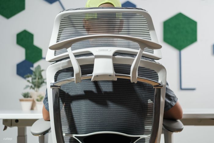 Một điểm mà mình rất thích ở Contessa II là tựa đầu. Nó không chỉ đỡ cổ mà còn đỡ được đầu, giúp mình cảm thấy thoải mái khi ngồi thẳng hoặc ngả ra sau. Ngoài ra, tựa đầu này cũng giúp mình đeo tai nghe một cách thoải mái mà không bị cấn hoặc không tựa sát vào tai nghe.