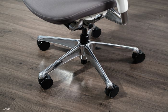 Phần bánh xe được làm từ nhôm với 5 chân bánh, hoàn thiện bóng, tạo ra vẻ đẹp tinh tế. Chân nhôm lớn có khả năng chịu trọng lượng lên đến 100kg.Tính năng tăng/giảm chiều cao nhẹ nhàng và thuận tiện