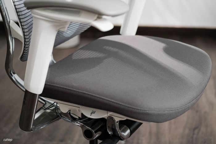 Mặt ghế vải mang lại cảm giác thoải mái và không bị nóng khi ngồi trong phòng mát. Phần nệm ngồi êm và ôm form cơ thể tốt. Chiều dày của miếng nệm ngồi khoảng hơn 4 cm.