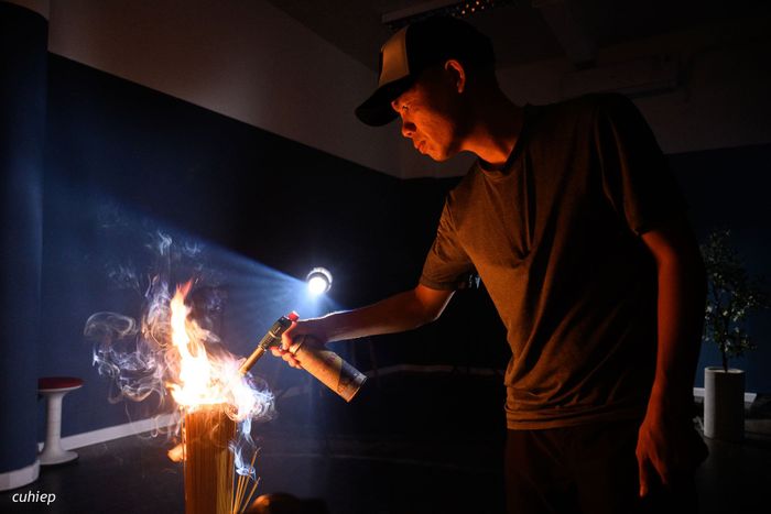Để kiểm tra khả năng lọc không khí của máy, tôi sử dụng nhang đèn để tạo ra môi trường thử nghiệm. Bằng cách này, tôi có thể quan sát trực tiếp hiệu suất hoạt động của máy.