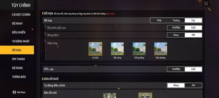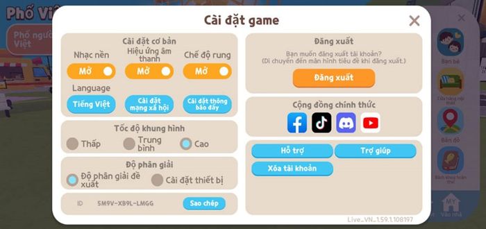 Kết thúc bài test game với Play Together, đồ họa được thiết lập như hình dưới.