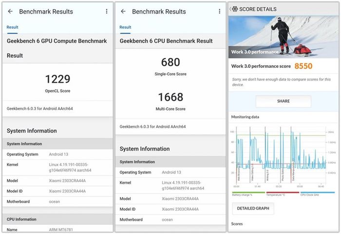 Bắt đầu với kết quả từ GeekBench 6 và PCMark cho Redmi Note 12S, chi tiết như sau: